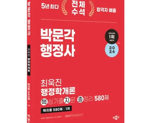 2024 박문각 행정사 1차 최욱진 행정학개론 핵심기출지문 총정리 580제:핵지총 580제
