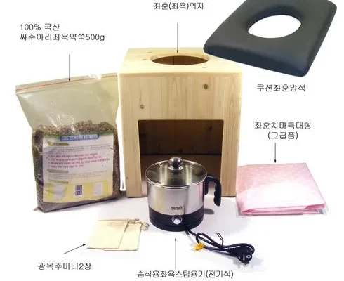 모사월드 (당일출고) (무료배송) 쑥좌욕기+안면스팀 좌훈세트 (인조가죽 좌훈쿠션방석 포함), 1세트