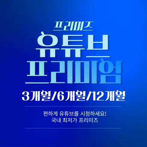 유튜브 프리미엄+유튜브 뮤직/1개월 6개월 12개월 24개월 이용권